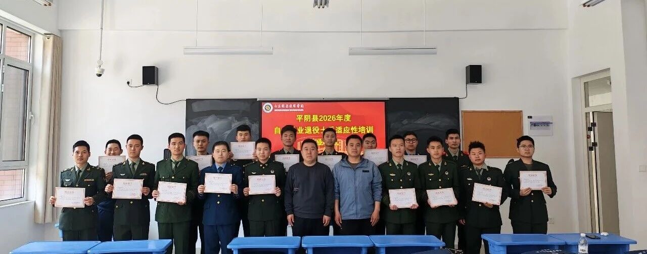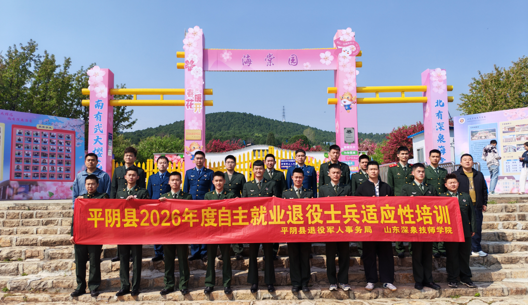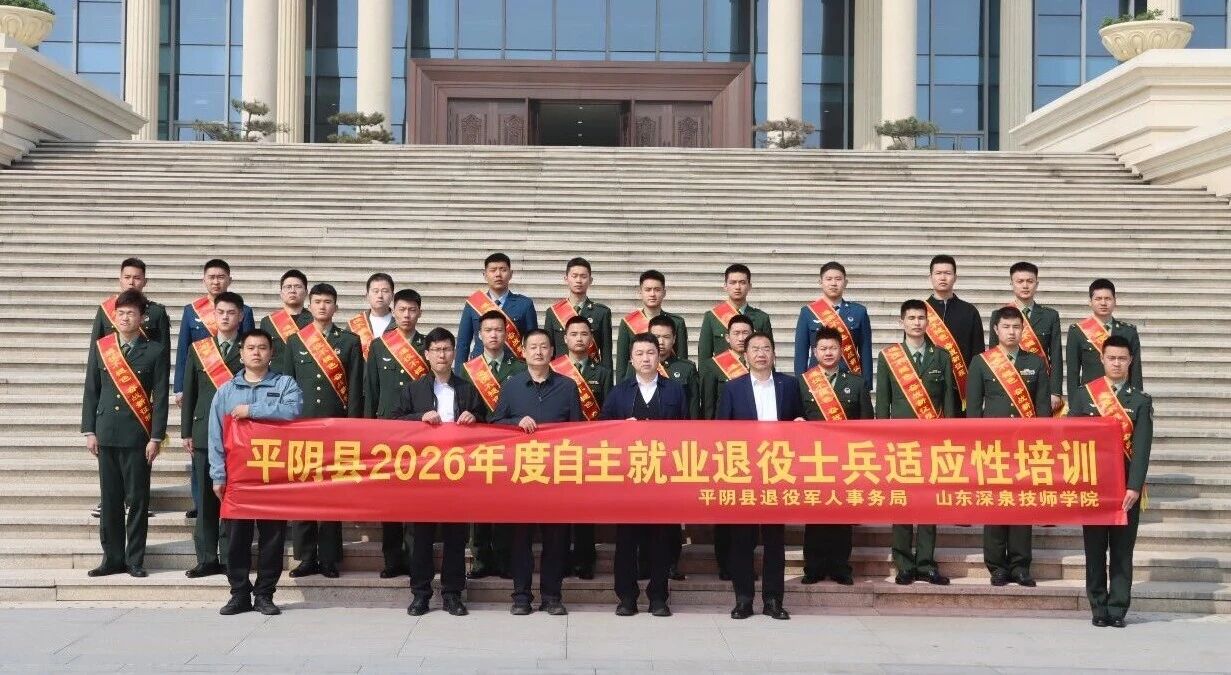 春光明媚,万物勃发。4月3日,山东深泉技师学院2026年春季退役士兵适应性培训顺利结业,退役士兵们带着满满的收获,即将踏上人生新征程。济南市退役军人事务局、平阴县退役军人事务局相关负责人,学院领导及全体参训学员共同见证了这一重要时刻。