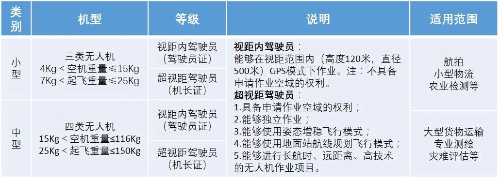 2、CAAC无人机执照类别等级
