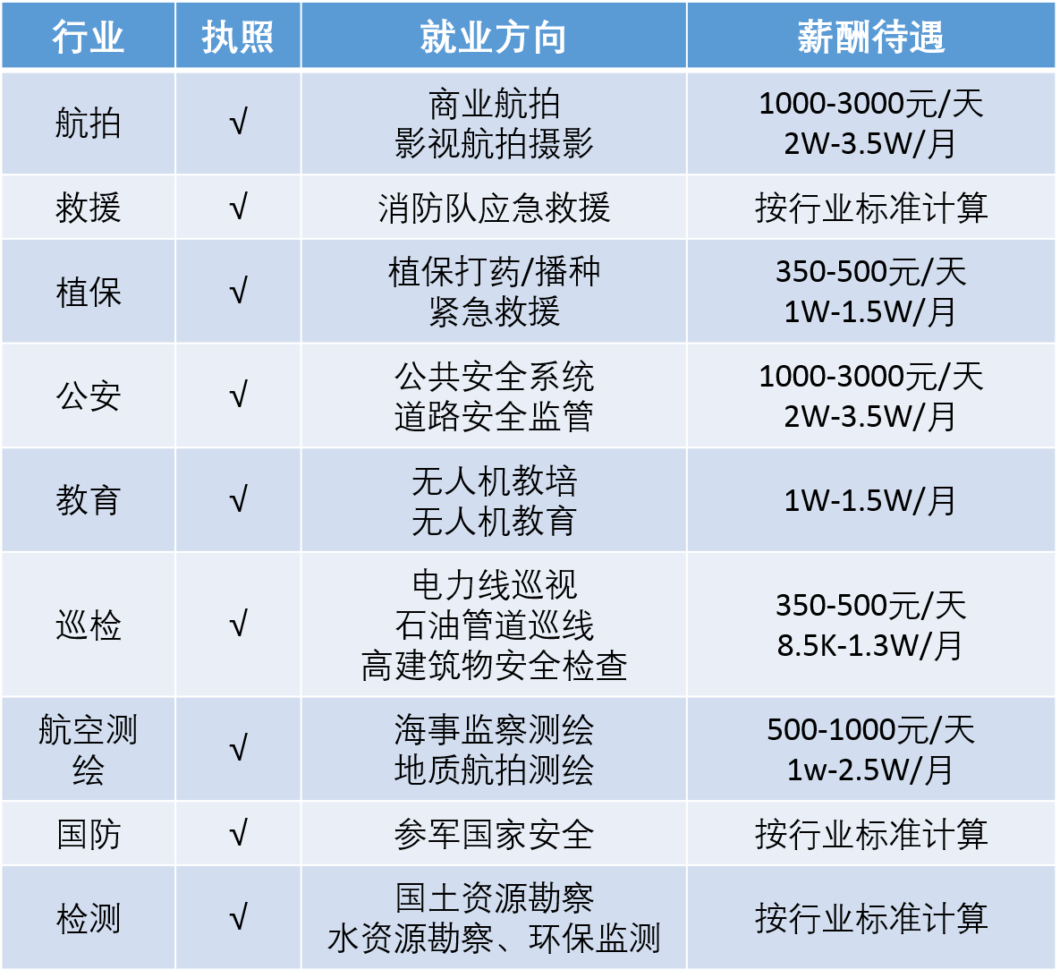 一、就业方向:持有无人机驾驶员执照就业方向和薪酬待遇